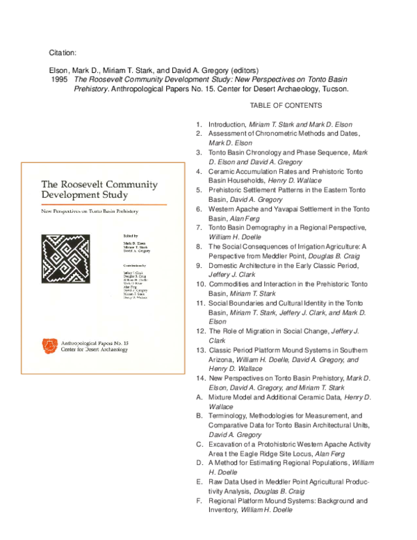Pdf The Roosevelt Community Development Study New Perspectives On Tonto Basin Prehistory Conclusion And Synthesis Anthropological Papers No 15 1995 Mark Elson Academia Edu